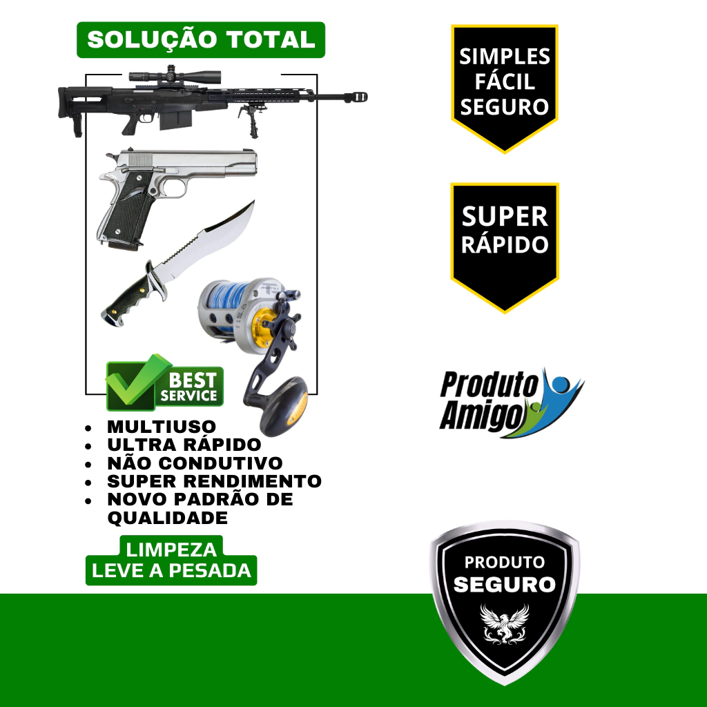 (Cano, ferrolho, gatilho — TUDO EM UM - Remove chumbamento, pólvora, ferrugem, detritos e lubrifica)